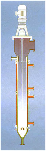 It consists of one or more jacketed cylinders and a rotary wiper inside the cylinder. The wiper continuously feeds the feed onto the heated surface into a thick, uniform liquid film and moves downward; during this process, the low boiling component is evaporated and the residue is discharged from the bottom of the evaporator.